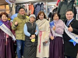 전통한복을 입은 임 의원은 광명사랑화폐로 장보기를 하면서 직접 장바구니 물가를 체험하는 한편, 경기침체로 어려움을 겪고 있는 상인의 애로사항을 경청하고 현안 해결을 위해 최선을 다할 것을 약속했다.