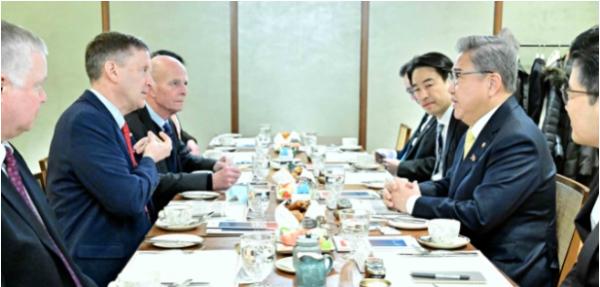 박진 외교장관은 1월 25일 방한 중인 Mark Green 윌슨센터 회장과 Stephen Biegun 전 미 국무부 부장관을 비롯한 미국 전직 의회, 행정부 및 학계 인사들을 접견하고, 한미동맹, 북한 문제, 인도-태평양 전략, 역내 정세 등에 대해 의견을 교환했다.