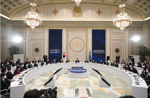 윤석열 대통령은 1.26일 오전 청와대 영빈관에서 법무부, 공정거래위원회, 법제처로부터 '2023년 법무·공정거래·법제 정책 방향'을 보고 받았다. ‘법과 원칙이 바로 선 나라, 함께 잘사는 공정한 대한민국’이라는 슬로건 아래 진행된 이 날 보고에는 한동훈 법무부 장관, 한기정 공정거래위원회 위원장, 이완규 법제처장 및 관련 교수·전문가 등 약 140여 명이 참석했다.