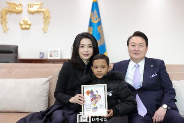 윤석열 대통령 부부는 오늘(1.31, 화) 오후 캄보디아 소년 로타를 대통령실로 초대했다.