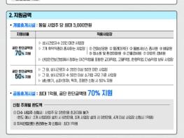 산업단지 또는 지식산업센터 내 다수 입주기업이나 대형유통센터(아웃렛, 마트, 백화점, 면세점 등) 내 다수 입점 업체가 공동으로 휴게시설을 설치하는 경우에 설치비용의 70% 한도로 최대 1억원까지 지원한다.