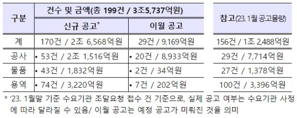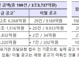 이 가운데 신규 공고는 170건, 2조6,568억원, 이월 공고는 29건, 9,169억원 규모다.
