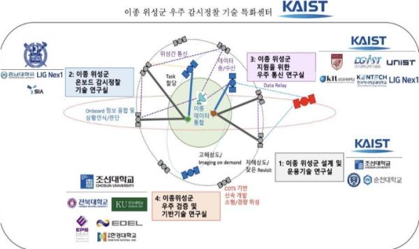 이번에 신규로 설립하는 ?이종 위성군 우주 감시정찰 기술? 특화연구센터는 '28년까지 6년(72개월)동안 약 221억 원을 투자하여, 서로 다른 다수의 위성군을 연결하고 운용하기 위한 기반기술을 연구한다.