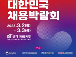 고용노동부는 2.20일부터 3.31일까지 ? 2023 대한민국 채용박람회?(온라인)를 개최, 특히 3.2일과 3.3일 양일간은 aT센터 제1전시장(서울 서초구 강남대로 27)에서 오프라인 행사를 진행한다고 밝혔다.