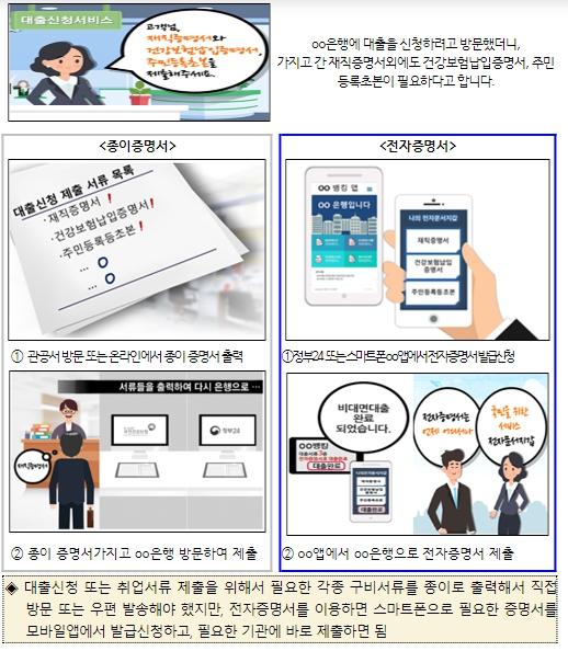 모바일 전자증명서는 취업이나 금융·통신 상품 가입 등 국민 생활과 밀접한 업무에서 종이증명서를 대신하여 활용되고 있다.