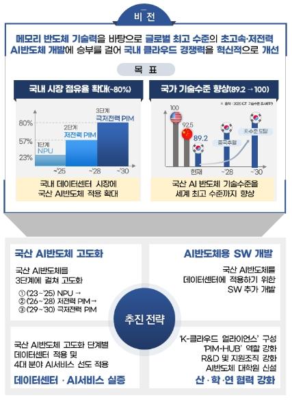 '대한민국 디지털 전략'의 핵심 과제인 ‘케이-클라우드’ 프로젝트는 세계 최고 수준의 초고속·저전력 국산 인공지능반도체를 개발, 이를 데이터센터에 적용하여 국내 클라우드 경쟁력을 강화하고, 국민들에게 향상된 AI 및 클라우드 서비스를 제공하기 위한 정책이다. 정부는 이를 위해 2023년부터 2030년까지 총 8,262억원(예정)을 투자, 국산 인공지능반도체를 3단계(엔피유(NPU) → 저전력핌(PIM) → 극저전력핌(PIM))에 걸쳐 고도화할 것이라고 밝혔다.
