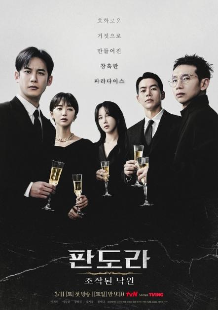 오는 3월 11일(토) 첫 방송되는 tvN 새 토일드라마 ‘판도라 : 조작된 낙원’(크리에이터 김순옥, 연출 최영훈, 극본 현지민, 기획 스튜디오드래곤, 제작 초록뱀미디어) 측은 오늘(15일) 의미심장한 ‘5인 단체 포스터’를 공개했다. 파티 분위기와는 이질적인 인물들의 어두운 눈빛과 강렬한 아우라가 궁금증을 자극한다.