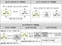 전략기술형 연구 개발(R&D)은 글로벌 기업의 수요에 기반하여 국내 기업의 기술개발을 지원하는 ‘글로벌 수요연계형’, IP인수, M&A 등으로 해외기술 조기 확보 시 후속 기술 사업화를 지원하는 ‘글로벌 기술도입형’, 세계 최고기술을 보유한 연구기관을 협력거점으로 국내 산업체와 연구기관의 기술협력을 지원하는 ‘글로벌 협력거점형’ 등으로 구분하여 지원하고 있다.