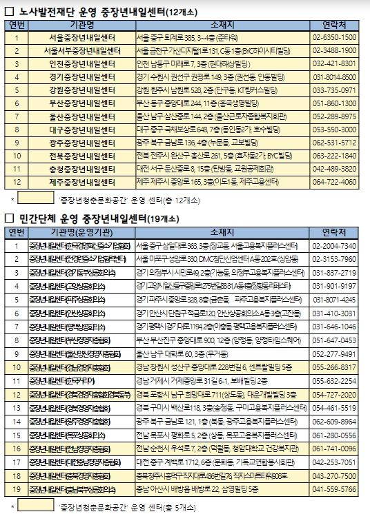 또한 개별 상담실을 조성하여 심층상담이 가능한 환경을 만들고, 중장년층 전용 ‘중장년 청춘문화공간’을 조성(17개소 조성 진행 중)하여 중장년내일센터가 중장년의 활력을 높일 수 있는 거점 공간이 되도록 했다.