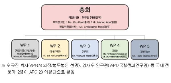 APG23-5 회의에는 아시아·태평양 전기통신협의체(APT) 38개 회원국 대표와 관계자 등 약 450여 명이 참가할 예정으로, 우리나라는 정부 및 산학연 등 전문가 70명으로 구성된 대표단(단장: 과기정통부 최우혁 전파정책국장)이 참가한다.