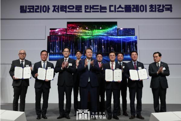 윤석열 대통령은 4. 4일 오후 충남 삼성디스플레이 아산캠퍼스에서 열린 삼성디스플레이와 소·부·장(소재·부품·장비) 협력업체 간 신규 투자협약식에 참석해, 디스플레이 산업의 새로운 도약을 여는 ‘4조 1천억 원의 대규모 신규 투자’라고 평가했다. 윤 대통령은 충남이 세계 최초로 OLED를 양산한 곳이라며, 혁신과 성장을 이루기 위해서는 국제 분업체계에서 부가가치가 큰 첨단산업 분야의 역량을 키워나가야 하고, 이 분야에 과감한 지원과 투자가 이뤄져야 한다고 강조했다.