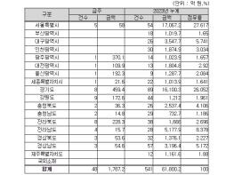 지역별로는 경기도 459억 원, 광주광역시 370억 원, 전라북도 228억 원, 그 밖의 지역이 730억 원이다.