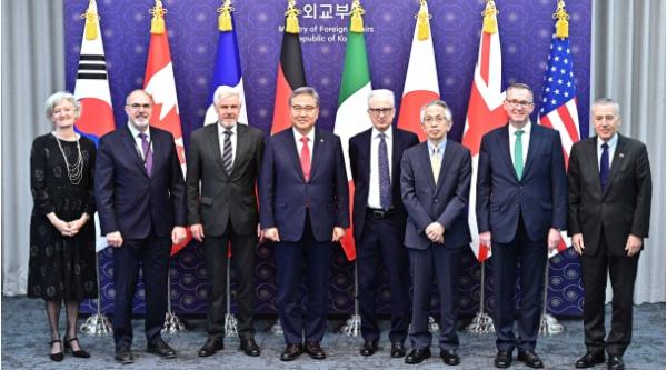 박진 외교장관은 4.10일 G7(주요 7개국 협의체) 주한대사 초청 만찬을 개최하여 한국이 올해 5월 G7 정상회의에 초청된 것을 환영하며 히로시마 정상회의의 성공적 개최를 위해 G7과 적극 협력하고 전세계적 현안 해결을 위해 기여하겠다는 우리의 의지를 표명했다.