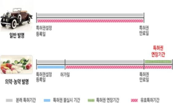 특허권 존속기간 연장제도는 의약품, 농약과 같이 제품 허가 절차로 인해 특허를 사용하지 못하는 경우 일정 기간 특허권의 존속기간을 연장해 주는 절차이고, 주요 의약품의 경우 특허권의 연장 여부가 권리를 갖고 있는 신약 개발사와 새롭게 시장에 진입하려는 복제약 제조 회사(제네릭사) 모두에게 미치는 영향이 크다.