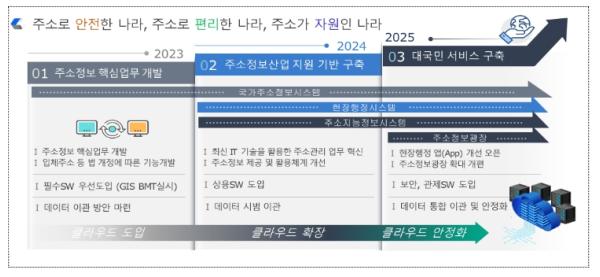 향후, 2·3단계 사업에서는 ?최신 정보기술(IT)을 활용한 주소관리 업무 혁신 ?주소정보 제공 및 활용체계 개편 ?현장행정시스템 개선 ?자치단체 데이터 통합·이관 등 지난 2022년 정보화전략계획 수립(ISP) 시, 확정한 연도별 목표과제를 단계적으로 추진한다.