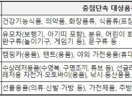 5대 중점단속 품목은 ▲식?의약품, ▲유아?어린이용품, ▲캠핑용품, ▲휴가?레저용품, ▲기타 선물용품 등이다.