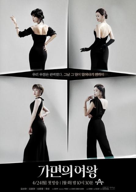 채널A 새 월화드라마 ‘가면의 여왕’(연출 강호중/ 극본 임도완/ 제작 더그레이트쇼, 래몽래인 / 기획 채널A)은 성공한 세 명의 친구들 앞에 10년 전 그녀들의 거짓말로 살인자가 된 옛 친구가 나타나 가면에 감춰진 진실이 드러나게 되고, 한 남자로 인해 인생의 소용돌이를 맞게 된 네 명의 친구들이 펼치는 질투와 욕망의 전쟁 이야기를 다룬 작품이다.