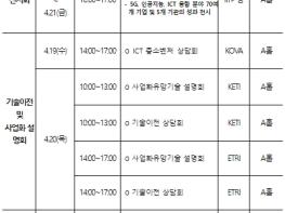 또한, 중소벤처 기업이 우수한 ICT 기술을 바탕으로 기업의 경쟁력을 높일 수 있도록 한국전자통신연구원, 한국전자기술연구원, 벤처기업협회 등이 사업화유망기술설명회, ICT 중소벤처 상담회, 기술이전 상담회 등을 개최할 예정이다.