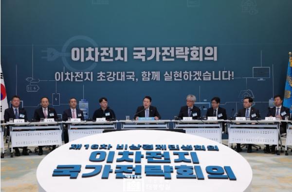 대통령은 “우리의 이차전지 산업은 세계 최고의 경쟁력을 갖고 있지만 그 입지를 유지할 수 있을지 도전도 만만치 않다”고 언급하면서, “반도체와 이차전지라는 두 개의 산업 전쟁이 치열하게 벌어지고 있는 지금, 오늘 이 자리를 통해 전황을 정확하게 파악하고, 어떻게 이길 것인지, 무엇을 더 지원해야 하는지 이야기하자”고 말했다.